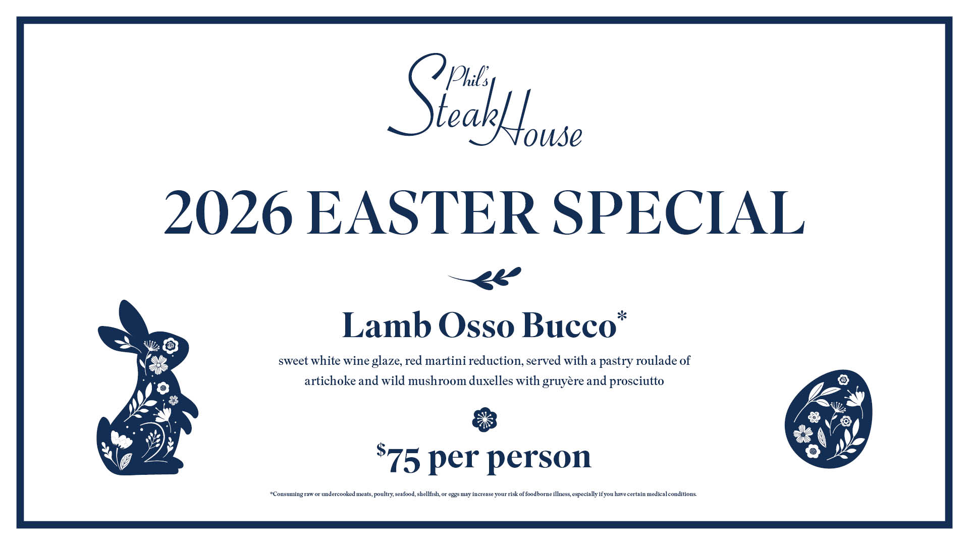 Phil’s Steak House offers an eclectic menu sure to please everyone at the table. From prime cuts of meat and mouth-watering seafood to classic Italian specialties, Phil’s Steak House’s dishes are perfection in every bite. Private dining is also available for parties up to forty people.